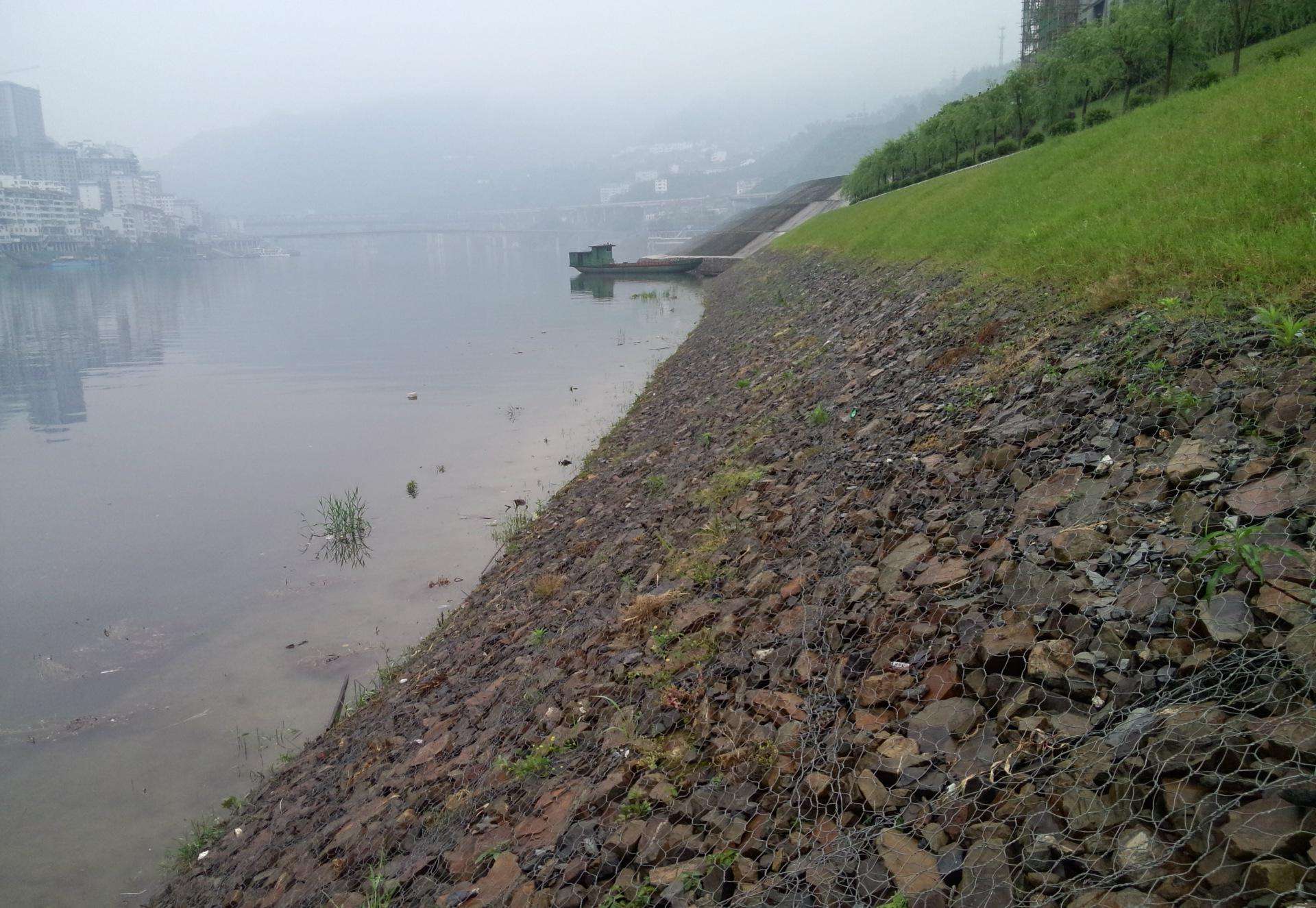 新大堤防洪(水庫大壩加固)摒棄了傳統(tǒng)方法,取而代之的方法是,使用一種用特殊金屬材料制成、網(wǎng)箱狀的“鉛絲籠(格賓籠)”,并就地取材,將河道清淤時(shí)清理出的符合使用要求的卵石填充到“格賓籠(鉛絲籠)”中,然后將這些裝滿卵石的“箱子”覆蓋到堤身上,最后再在“箱子”上加蓋厚厚的“種植土”。這樣可保證堤壩上的植物將根莖扎入堤內(nèi),既可使大堤(大壩)更加堅(jiān)固,又實(shí)現(xiàn)了水體與堤下土體間的自然對(duì)流交換,從而實(shí)現(xiàn)生態(tài)平衡。鉛絲籠(格賓籠)可以對(duì)河道大堤或者河水庫大壩到永久性的保護(hù)作用,甚至可以控制水流量,減速防止快速?zèng)_擊岸堤所造成的損壞,可以有效控制水土流失,以及保護(hù)水質(zhì)。